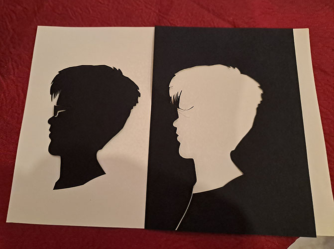 To produce a face to face portrait silhouette is a very challenging work, you scoring must be very accurate otherwise the artwork will be very ugly.